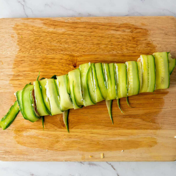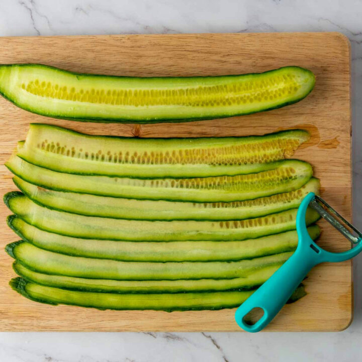 - Use a mandoline for perfectly thin, even cucumber slices that won’t tear when rolling.